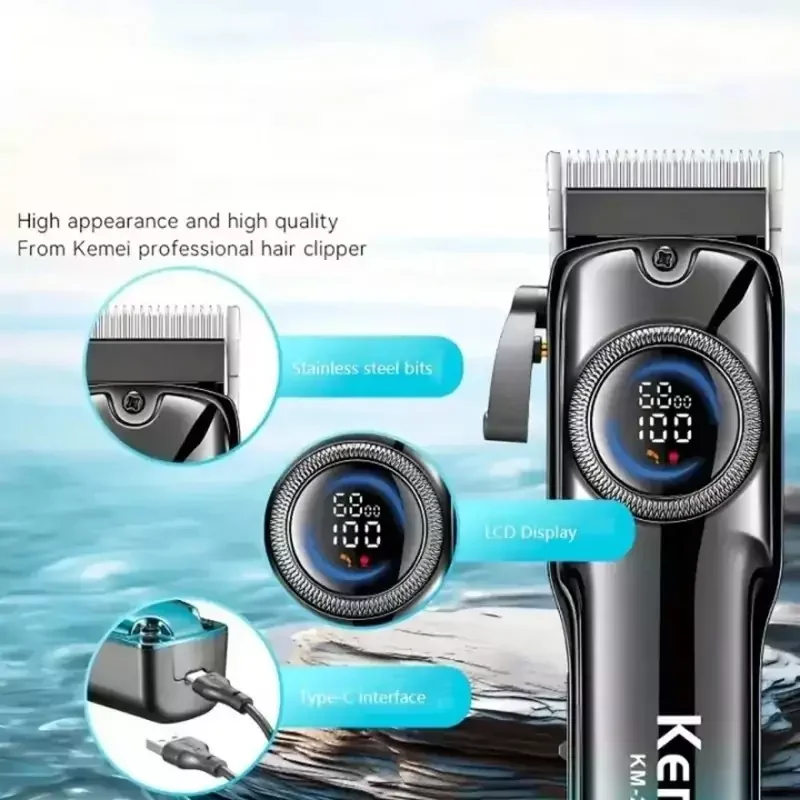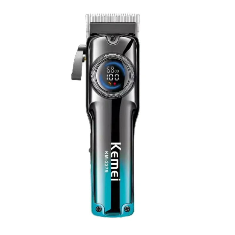 ماشین اصلاح کیمی مدل Kemei Km-2279جنس تیغهها: استیل ضد زنگ نوع: حجم زن مناسب: فید و سایه زنی دارای اهرم تنظیم بیشترین دور موتور: 6800 دور در دقیقه منبع انرژی: باتری 2000 میلی آمپر مدت زمان شارژ کامل: 3 ساعت مدت زمان قابل استفاده: 210 دقیقه طراحی: ارگونومیک موتور بسیار قدرتمند و کم صدا